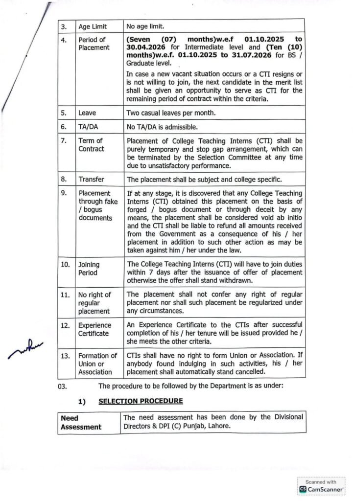 | Vacancy Location | All Government Colleges in Punjab |