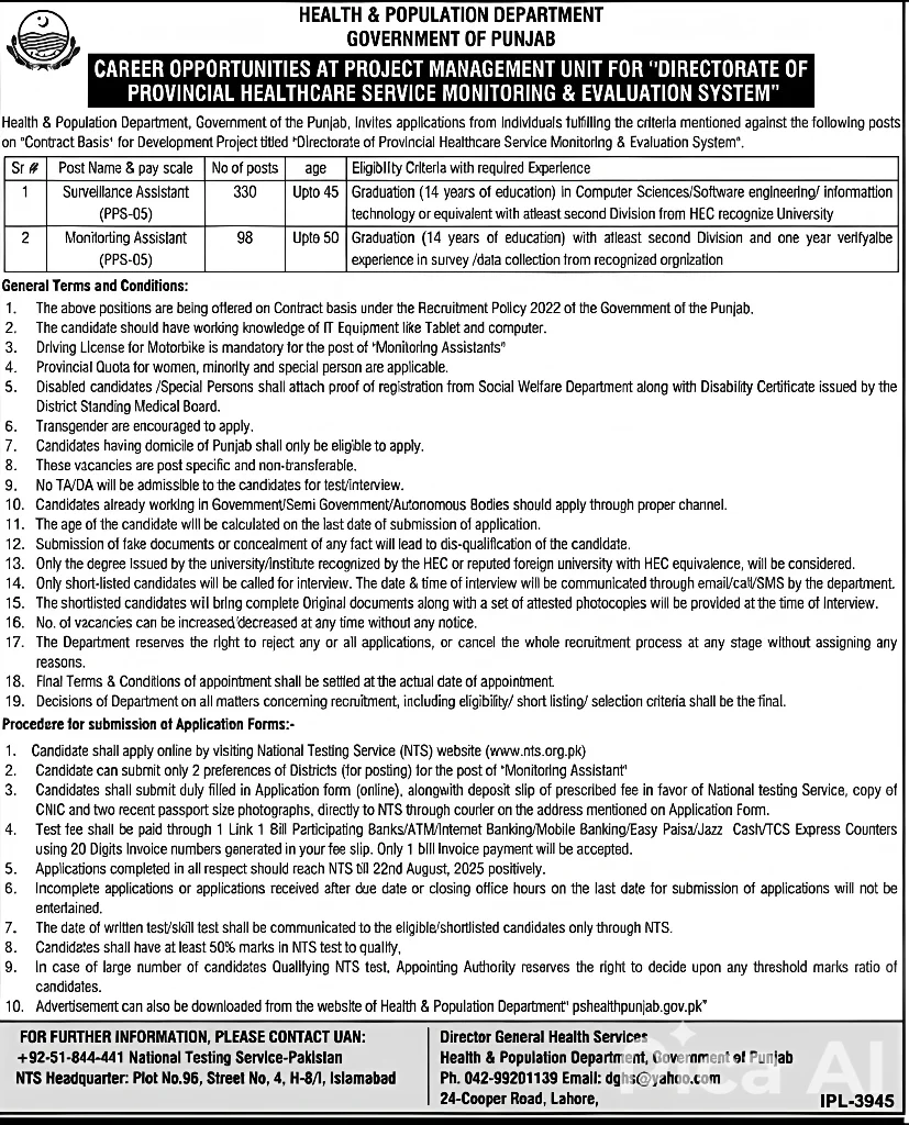 Health and Population Department Jobs Apply Online through NTS || 440+ Latest Jobs 2025